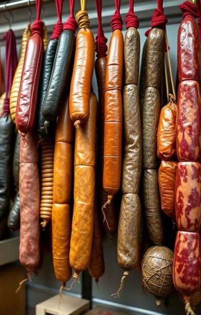 Imagine a conversation taking place at an international food festival celebrating traditional sausages from around the world. A chef from Martinique presents boudin noir, explaining its spicy, smaller variation unique to the island, with influences from both French and Creole cuisines. Nearby, another chef showcases Spanish morcilla, made with rice and spices, while yet another chef highlights Polish kaszanka, made with buckwheat and onions. In the corner, a British chef proudly serves up traditional black pudding, thick slices pan-fried and seasoned with oatmeal and herbs.